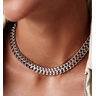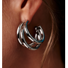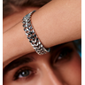 Kolczyki o zaokrąglonej, przestrzennej formie pięknie odbijają światło i subtelnie podkreślają rysy twarzy. Są wyraziste, ale dzięki gładkiej, polerowanej powierzchni zachowują elegancję. Naszyjnik w formie gęstego łańcucha oplata szyję jak nowoczesny choker – dodaje stylizacji siły i modowego pazura. Do kompletu dopasowana bransoletka z tym samym, efektownym splotem tworzy spójną i harmonijną całość.