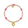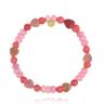 Różowe kamienie pięknie podkreślają opaleniznę latem, a zimą ożywiają neutralne swetry i marynarki. To idealny wybór na co dzień – do T-shirtu, koszuli, sukienki – ale również jako delikatny, kobiecy akcent do bardziej eleganckiego looku. Elastyczna forma sprawia, że bransoletki wygodnie dopasowują się do nadgarstka.
