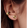 Złoto, które przyciąga spojrzenia. Ten zestaw to połączenie wyrazistych kolczyków wkrętek w kształcie czterolistnej koniczynki oraz gładkiego, szerokiego ear cuffa w złotym wykończeniu. Razem tworzą nowoczesną, ale niezwykle kobiecą kompozycję.