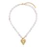 Centralnym punktem zestawu jest złota zawieszka w kształcie gładkiego, polerowanego serca, zawieszona przy ozdobnym zapięciu typu toggle. Lustrzana powierzchnia serca odbija światło i stanowi wyrazisty kontrast dla matowych, naturalnych kamieni. To detal, który przyciąga spojrzenia i nadaje całości nowoczesnego charakteru.