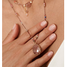 Dłuższy model przyciąga wzrok większą, fasetowaną zawieszką w odcieniu zgaszonego różu. Kamień osadzony w złotej oprawie delikatnie odbija światło i nadaje całości bardziej wyrazistego akcentu, nie tracąc przy tym lekkości.