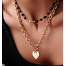 Dwa różne charaktery, jeden spójny efekt. Ten zestaw łączy delikatność drobnych, czarnych koralików z wyrazistością złotego łańcucha i klasycznego serca.