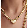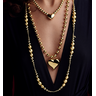 Ten zestaw to esencja kobiecości zamknięta w formie trzech złotych naszyjników, które razem tworzą efektowną, wielowarstwową kompozycję. Różne długości łańcuszków i zróżnicowana wielkość kulek budują głębię i sprawiają, że całość przyciąga spojrzenia już z daleka. Dwa polerowane serca – jedno subtelne, bliżej szyi, drugie większe i bardziej wyraziste – nadają stylizacji emocjonalny akcent, jednocześnie zachowując elegancki, nowoczesny charakter.